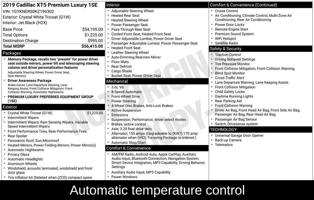 This 2019 Cadillac XT5 Premium Luxury is a true standout in the luxury SUV segment. With its exceptional blend of style, technology, and performance, it's the perfect vehicle to elevate your driving experience. We invite you to schedule a test drive and discover the exceptional value this XT5 has to offer.