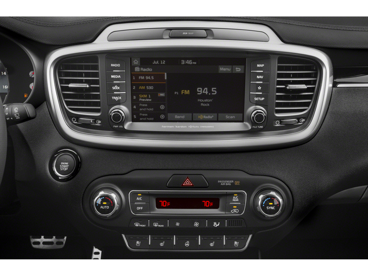 • Radio: UVO eServices w/Premium Navigation -inc: 8" touch-screen display, AM/FM radio, MP3, Android Auto, Apple CarPlay, SiriusXM, voice recognition, rear-camera display, USB/auxiliary input jacks and Bluetooth® wireless technology