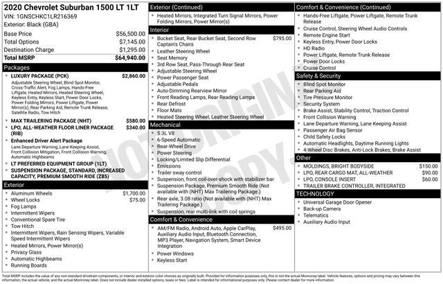 Black 2020 Chevrolet Suburban LT EcoTec3 5.3L V8 6-Speed Automatic Electronic with Overdrive RWD