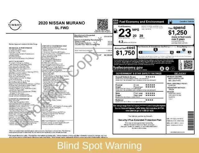 Experience the perfect blend of power, comfort, and technology in this exceptional 2020 Nissan Murano SL. With its impressive list of features and impeccable design, this crossover is poised to elevate your driving experience. Visit our showroom today and let us demonstrate how this Murano SL can exceed your expectations.