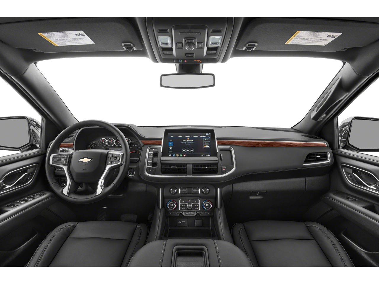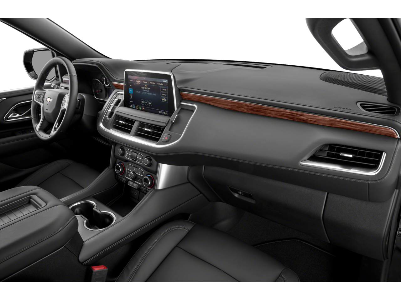 10-Way Power Driver & Passenger Seat Adjusters, 1st & 2nd Row Color-Keyed Carpeted Floor Mats, 2 USB Data Ports, 2nd Row Manual Bucket Seats, 3.23 Rear Axle Ratio, 3rd row seats: split-bench, 4-Wheel Disc Brakes, 9 Speakers, ABS brakes, Air Conditioning, Alloy wheels, AM/FM radio: SiriusXM with 360L, Apple CarPlay/Android Auto, Auto High-beam Headlights, Auto-Dimming Inside Rear-View Mirror, Auto-dimming Rear-View mirror, Automatic temperature control, Black Exhaust Tip (LPO), Black Name Plates (LPO), Bose 9-Speaker Stereo Audio System Feature, Brake assist, Bright Front & Rear Door Sill Plates, Bumpers: body-color, Color-Keyed Carpeting Floor Covering, Compass, Delay-off headlights, Driver & Front Outboard Passenger Airbags, Driver door bin, Driver vanity mirror, Dual front impact airbags, Dual front side impact airbags, Dual-Pane Power Panoramic Sunroof, Electronic Stability Control, Emergency communication system: OnStar and Chevrolet connected services capable, Floor Console w/Storage Area, Four wheel independent suspension, Front & Rear Black Bowtie Emblems (LPO), Front anti-roll bar, Front Bucket Seats, Front Center Armrest, Front dual zone A/C, Front reading lights, Fully automatic headlights, Garage door transmitter, Hands-Free Rear Power Programmable Liftgate, HD Radio, Heated door mirrors, Heated Driver & Front Passenger Seats, Heated front seats, Illuminated entry, Infotainment Display, Leather Seating Surfaces, Leather steering wheel, Leather-Wrapped Steering Wheel, LED Daytime Running Lamps, Low tire pressure warning, Memory seat, Memory Settings For Driver, Occupant sensing airbag, Outside temperature display, Overhead airbag, Overhead console, Panic alarm, Passenger door bin, Passenger vanity mirror, Power door mirrors, Power driver seat, Power Liftgate, Power passenger seat, Power steering, Power windows, Preferred Equipment Group 1LT, Premium audio system: Chevrolet Infotainment 3 Plus, Premium Smooth Ride Suspension, Radio: Chevrolet Infotainment 3 Plus System, Rain sensing wipers, Rear air conditioning, Rear anti-roll bar, Rear reading lights, Rear seat center armrest, Rear window defroster, Rear window wiper, Remote keyless entry, Remote Start, Roof rack: rails only, Security system, SiriusXM Radio w/360L, Speed control, Speed-sensing steering, Split folding rear seat, Spoiler, Steering wheel mounted audio controls, Tachometer, Telescoping steering wheel, Tilt steering wheel, Traction control, Trip computer, Universal Home Remote, Variably intermittent wipers, Voltmeter, Wheels: 18 x 8.5 Bright Silver Painted Aluminum, Wheels: 20 x 9 Painted Aluminum.