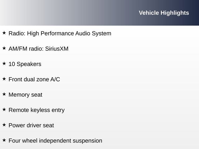 - Front Bucket Seats -inc: 10-way power front seats w/2-way power lumbar and driver seat memory