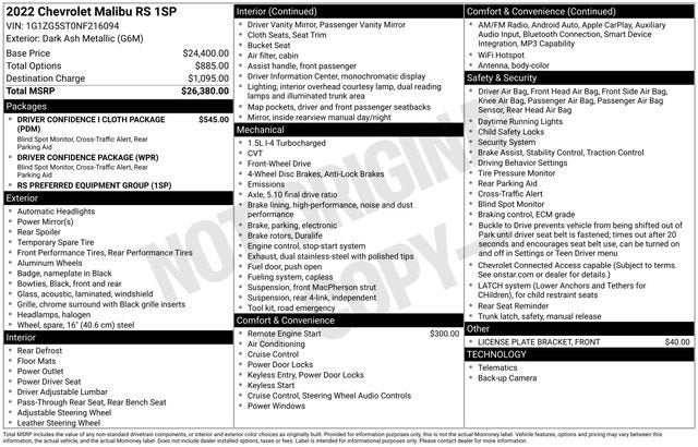 Whether you're commuting to the office, embarking on a road trip, or simply enjoying the thrill of the open road, the 2022 Chevrolet Malibu RS is the perfect companion. Experience the perfect balance of style, performance, and technology that this exceptional sedan has to offer. Visit our showroom today and discover why the Malibu RS should be your next vehicle.