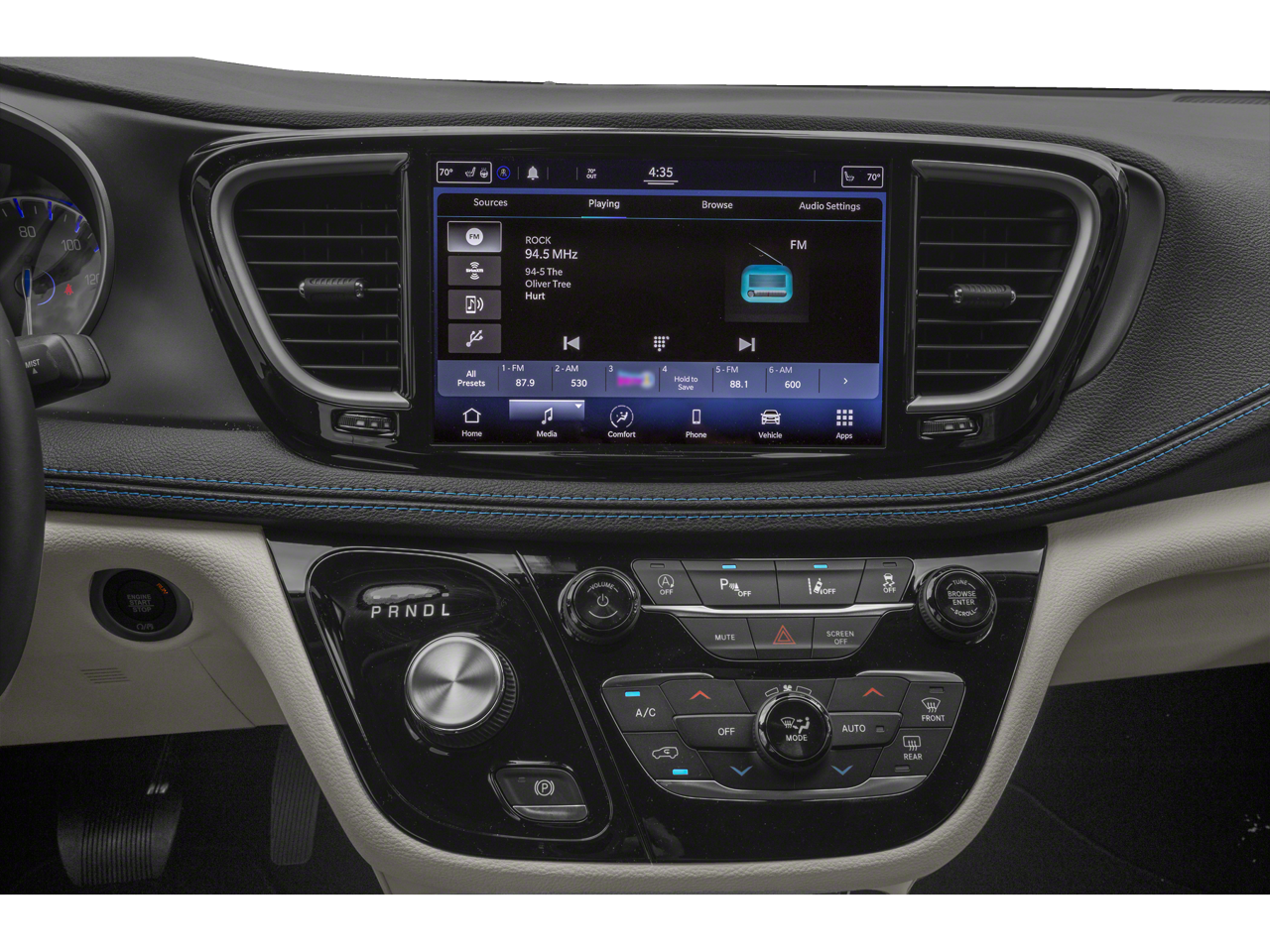 Elevate your driving experience with the Pacifica Touring L's cutting-edge technology. Enjoy the convenience of Delay-off headlights, Front fog lights, Fully automatic headlights, Panic alarm, Security system, Speed control, Heated door mirrors, Power door mirrors, Roof rack, Spoiler, Touring Suspension, Turn signal indicator mirrors, 10.1 Touchscreen Display, Apple CarPlay, Apple CarPlay/Android Auto, Auto-dimming Rear-View mirror, Compass, Disassociated Touchscreen Display, Driver door bin, Driver vanity mirror, Front reading lights, Garage door transmitter, Google Android Auto, Heated steering wheel, Illuminated entry, Outside temperature display, Overhead console, ParkSense Rear Park Assist Unavailable, ParkSense Rear Park Assist w/Stop, Passenger seat mounted armrest, Passenger vanity mirror, Perforated Leather Trim Bucket Seats, Rear reading lights, Tachometer, Telescoping steering wheel, Tilt steering wheel, Trip computer, USB Host Flip, and Voltmeter.