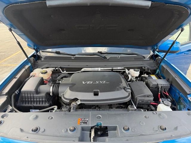 6-Speaker Audio System Feature, Apple CarPlay/Android Auto, Automatic Locking Rear Differential, Electronic Stability Control, Illuminated entry, Preferred Equipment Group 2LE, Trailering Package, 4-Wheel Disc Brakes, 6 Speakers, ABS brakes, Air Conditioning, Alloy wheels, AM/FM radio: SiriusXM, Auto-dimming Rear-View mirror, Automatic temperature control, Bumpers: body-color, Cloth Seat Trim, Compass, Delay-off headlights, Driver 6-Way Power Seat Adjuster, Driver door bin, Driver vanity mirror, Dual front impact airbags, Dual front side impact airbags, Emergency communication system: OnStar and GMC Connected Services capable, Exterior Parking Camera Rear, Front anti-roll bar, Front Bucket Seats, Front Center Armrest, Front fog lights, Front reading lights, Front wheel independent suspension, Fully automatic headlights, Heated door mirrors, Hitch Guidance, Low tire pressure warning, Occupant sensing airbag, Outside temperature display, Overhead airbag, Overhead console, Panic alarm, Passenger door bin, Passenger vanity mirror, Power door mirrors, Power driver seat, Power steering, Power windows, Premium audio system: GMC Infotainment System, Radio data system, Radio: AM/FM w/8 Diagonal Color Touch-Screen, Rear reading lights, Rear seat center armrest, Rear step bumper, Rear window defroster, Remote keyless entry, Security system, SiriusXM Radio, Speed control, Speed-sensing steering, Steering wheel mounted audio controls, Tachometer, Telescoping steering wheel, Tilt steering wheel, Tow/Haul Mode, Traction control, Trip computer, Variably intermittent wipers, Wheels: 18 x 8.5 Black Painted Aluminum, 6-Speaker Audio System Feature, Apple CarPlay/Android Auto, Automatic Locking Rear Differential, Electronic Stability Control, Illuminated entry, Preferred Equipment Group 2LE, Trailering Package.