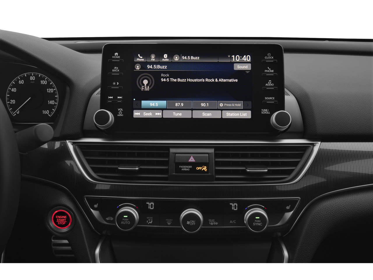 - Radio: 180-Watt AM/FM Audio System -inc: 8 speakers, 8" display audio w/high-resolution electrostatic touch-screen, knobs and hard keys for primary controls and customizable feature settings, Bluetooth HandsFreeLink, Bluetooth streaming audio, SMS text message function, Radio Data System (RDS), Speed-Sensitive Volume Compensation (SVC), HondaLink, Apple CarPlay integration, Android Auto integration, 2 2.5-amp USB smartphone/audio interface ports in front console, 2 2nd-row 2.5-amp USB charging ports, illuminated steering wheel-mounted controls and gloss black fin-type roof-mounted antenna
