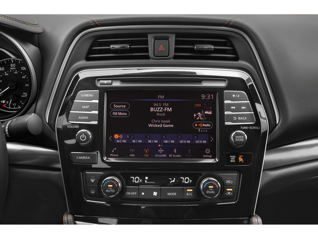 - Radio: AM/FM/CD Bose Audio System -inc: MP3/WMA/AUX reader, 11 speakers, NissanConnect featuring 8" color display w/multi-touch control, Apple CarPlay, Android Auto, 2 front illuminated USB connection ports (1 Type-A, 1 Type-C), rear USB ports (charge only, 1 Type-A, 1 Type-C), Bluetooth® hands-free phone system, hands-free text messaging assistant, streaming audio via Bluetooth®, voice recognition, Siri Eyes Free, SiriusXM radio, SiriusXM advanced audio features, NissanConnect services powered by SiriusXM, Wi-Fi hotspot, Nissan door to door navigation, SiriusXM Traffic, SiriusXM Travel Link, display commander and 7" Advanced Drive Assist Display (ADAD)