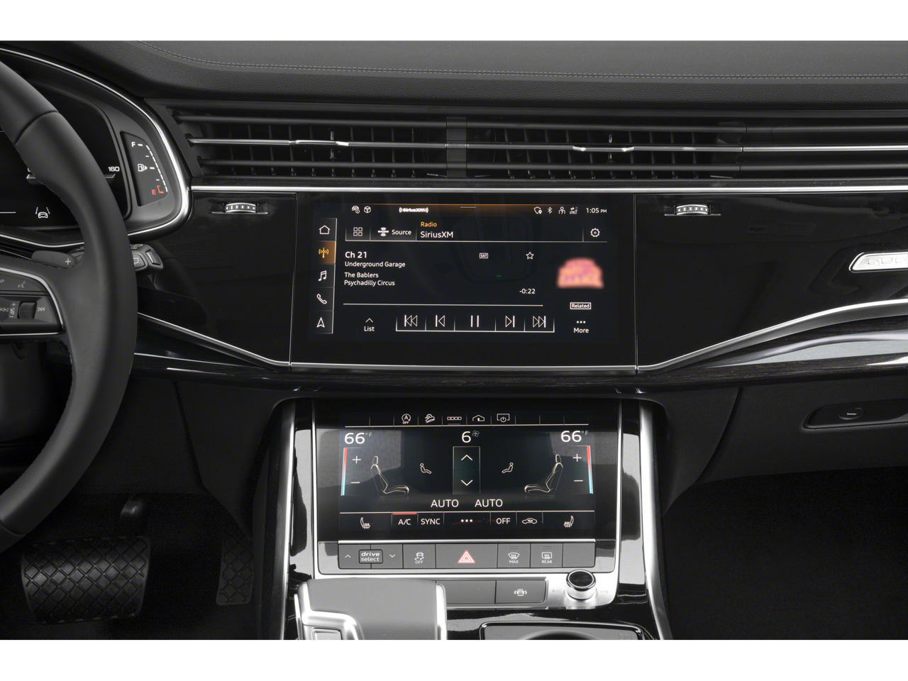 - Radio: Audi Sound System -inc: Audi connect CARE (limited time subscription), Audi connect PLUS (6 month trial subscription, acceptance of Terms required), Audi smartphone interface (wireless Apple CarPlay and Android Auto), Audi MMI navigation plus w/MMI touch response (10.1" upper screen), Bluetooth® w/audio streaming and SiriusXM w/360L (3 month trial subscription, acceptance of Terms required)