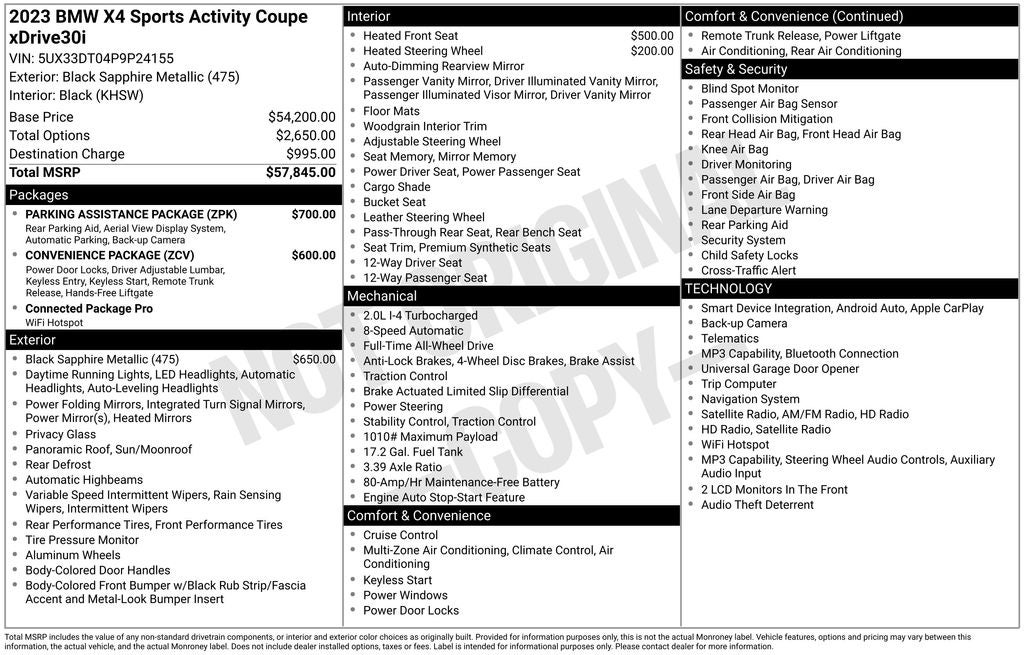 - Vehicle Name: BMW X4