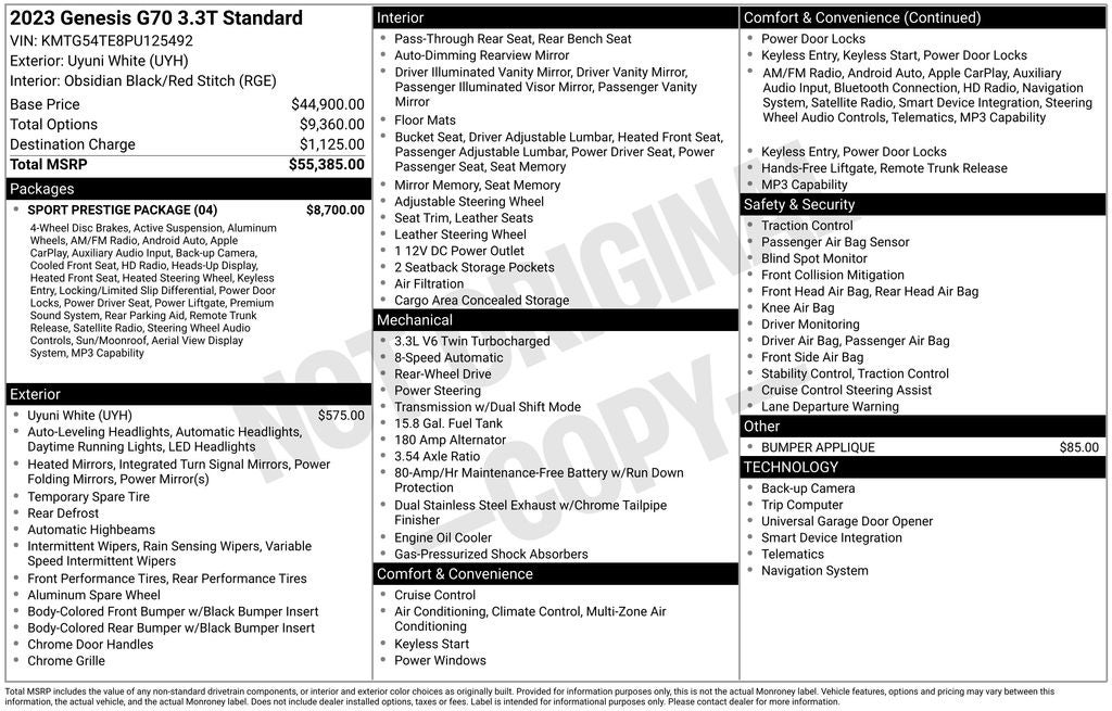 2023 Genesis G70 3.3T