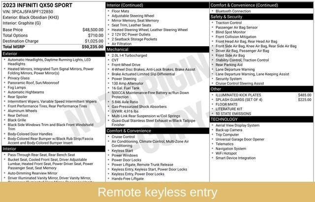 Whether you're embarking on a long road trip or navigating the daily commute, the 2023 INFINITI QX50 SPORT is the perfect companion. Experience the perfect blend of style, performance, and technology by scheduling a test drive at our showroom today.