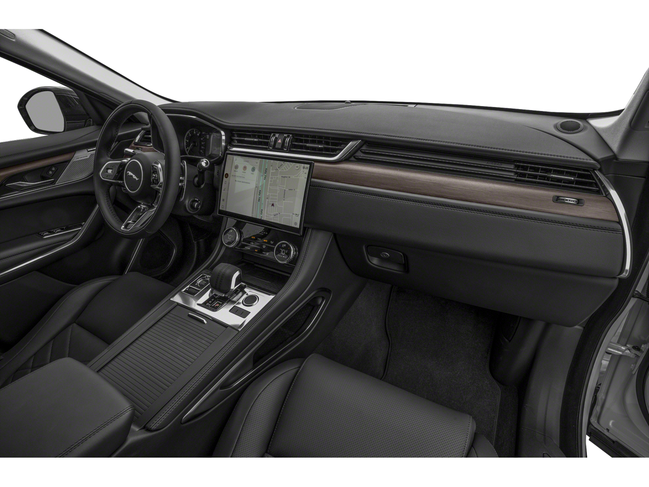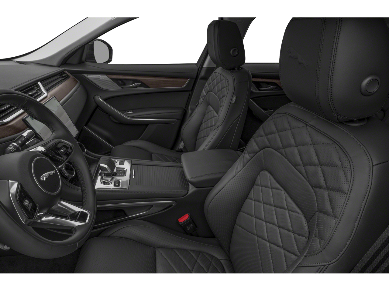 Inside, the F-PACE offers a spacious and well-appointed cabin, with premium DuoLeather seat trim, a leather-wrapped steering wheel, and genuine wood accents. The split-folding rear seats and generous cargo space make this SUV the perfect companion for your adventures, whether it's a weekend getaway or a daily commute.