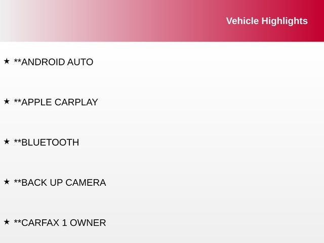 **ANDROID AUTO, **APPLE CARPLAY, **Bluetooth®, **BACK UP CAMERA, **CARFAX 1 OWNER, 4-Wheel Disc Brakes, 4.014 Axle Ratio, 6 Speakers, ABS brakes, Air Conditioning, Alloy wheels, AM/FM radio: SiriusXM, Auto High-beam Headlights, Auto-dimming Rear-View mirror, Automatic temperature control, Brake assist, Bumpers: body-color, Delay-off headlights, Driver door bin, Driver vanity mirror, Dual front impact airbags, Dual front side impact airbags, Electronic Stability Control, Emergency communication system: Safety Connect (10-year trial), Exterior Parking Camera Rear, Four wheel independent suspension, Front anti-roll bar, Front Bucket Seats, Front Center Armrest, Front dual zone A/C, Front fog lights, Front reading lights, Fully automatic headlights, Heated door mirrors, Heated Front Bucket Seats, HEATED FRONT SEATS, Illuminated entry, Knee airbag, Leather Shift Knob, Leather steering wheel, Low tire pressure warning, Occupant sensing airbag, Outside temperature display, Overhead airbag, Panic alarm, Passenger door bin, Passenger vanity mirror, Power door mirrors, Power driver seat, Power steering, Power windows, Radio data system, Radio: 8 Toyota Multimedia, Rear anti-roll bar, Rear seat center armrest, Rear side impact airbag, Rear window defroster, Rear window wiper, Remote keyless entry, Roof rack: rails only, Softex Synthetic Leather Seat Trim, Speed control, Split folding rear seat, Spoiler, Steering wheel mounted audio controls, Tachometer, Telescoping steering wheel, Tilt steering wheel, Traction control, Trip computer, Turn signal indicator mirrors, Variably intermittent wipers, Wheels: 18 Alloy w/Black-Painted Machine-Finish.