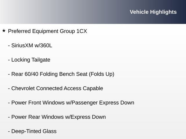 - Tailgate, locking, utilizes same key as ignition and door (Upgraded to (QT5) EZ Lift power lock and release tailgate when (PCX) Custom Convenience Package is ordered.)