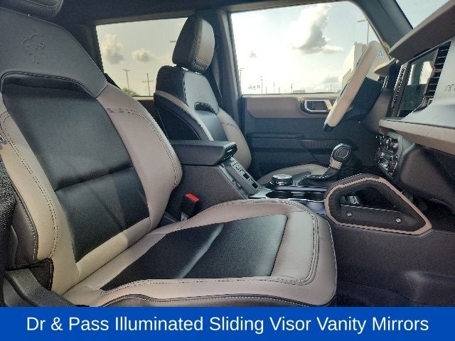 Azure Gray Metallic 2024 Ford Bronco Big Bend 4WD 10-Speed Automatic 2.3L EcoBoost I-4 WE DELIVER ANYWHERE, 2-Door Intelligent Access w/Lock/Unlock, Ambient Footwell Lighting, Auto-Dimming Interior Rear-View Mirror, Connected Navigation, Dr & Pass Illuminated Sliding Visor Vanity Mirrors, Dual Smart Charging USB Ports, Dual-Zone Electronic Automatic Temperature Control, Equipment Group 222A Mid Package, Front Row Heated Seats, Power Outlet - Back Side of Center Floor Console, Rear Parking Sensors, 4-Wheel Disc Brakes, 4.46 Axle Ratio, 7 Speakers, ABS brakes, Air Conditioning, Alloy wheels, AM/FM radio: SiriusXM with 360L, AM/FM Stereo, Auto High-Beam Headlamps, Auto High-beam Headlights, Auxiliary Switches, BLIS Blind Spot Information System, Brake assist, Compass, Delay-off headlights, Driver door bin, Driver vanity mirror, Dual front impact airbags, Dual front side impact airbags, Electronic Stability Control, Emergency communication system: 911 Assist, Exterior Parking Camera Rear, Front anti-roll bar, Front Bucket Seats, Front Center Armrest, Front fog lights, Front reading lights, Front wheel independent suspension, Fully automatic headlights, Heated door mirrors, Illuminated entry, Integrated roll-over protection, Lane-Keeping System, Leather Shift Knob, Low tire pressure warning, Marine Grade Vinyl Bucket Seats, Occupant sensing airbag, Outside temperature display, Overhead airbag, Overhead console, Panic alarm, Passenger door bin, Passenger vanity mirror, Powder Coated Tube Step, Power door mirrors, Power steering, Power windows, Pre-Collision Assist w/Automatic Emergency Braking, Radio data system, Rear-View Camera, Remote keyless entry, Security system, SiriusXM Radio w/360L, Slide-Out Tailgate, Speed control, Split folding rear seat, Steering wheel mounted audio controls, SYNC 4, Tachometer, Telescoping steering wheel, Tilt steering wheel, Traction control, Trip computer, Variably intermittent wipers, Wheels: 17 Carbonized Gray-Painted Aluminum, 2-Door Intelligent Access w/Lock/Unlock, Ambient Footwell Lighting, Auto-Dimming Interior Rear-View Mirror, Connected Navigation, Dr & Pass Illuminated Sliding Visor Vanity Mirrors, Dual Smart Charging USB Ports, Dual-Zone Electronic Automatic Temperature Control, Equipment Group 222A Mid Package, Front Row Heated Seats, Power Outlet - Back Side of Center Floor Console, Rear Parking Sensors.