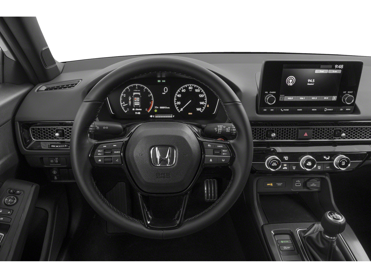 The interior of the 2024 Honda Civic Sport is designed with your comfort and convenience in mind. The Cloth/Leatherette Seating Surfaces provide a premium feel, while the Front Bucket Seats and Front Center Armrest ensure you and your passengers ride in comfort. The Steering Wheel Mounted Audio Controls and Tilt/Telescoping Steering Wheel allow you to keep your hands on the wheel and your eyes on the road.
