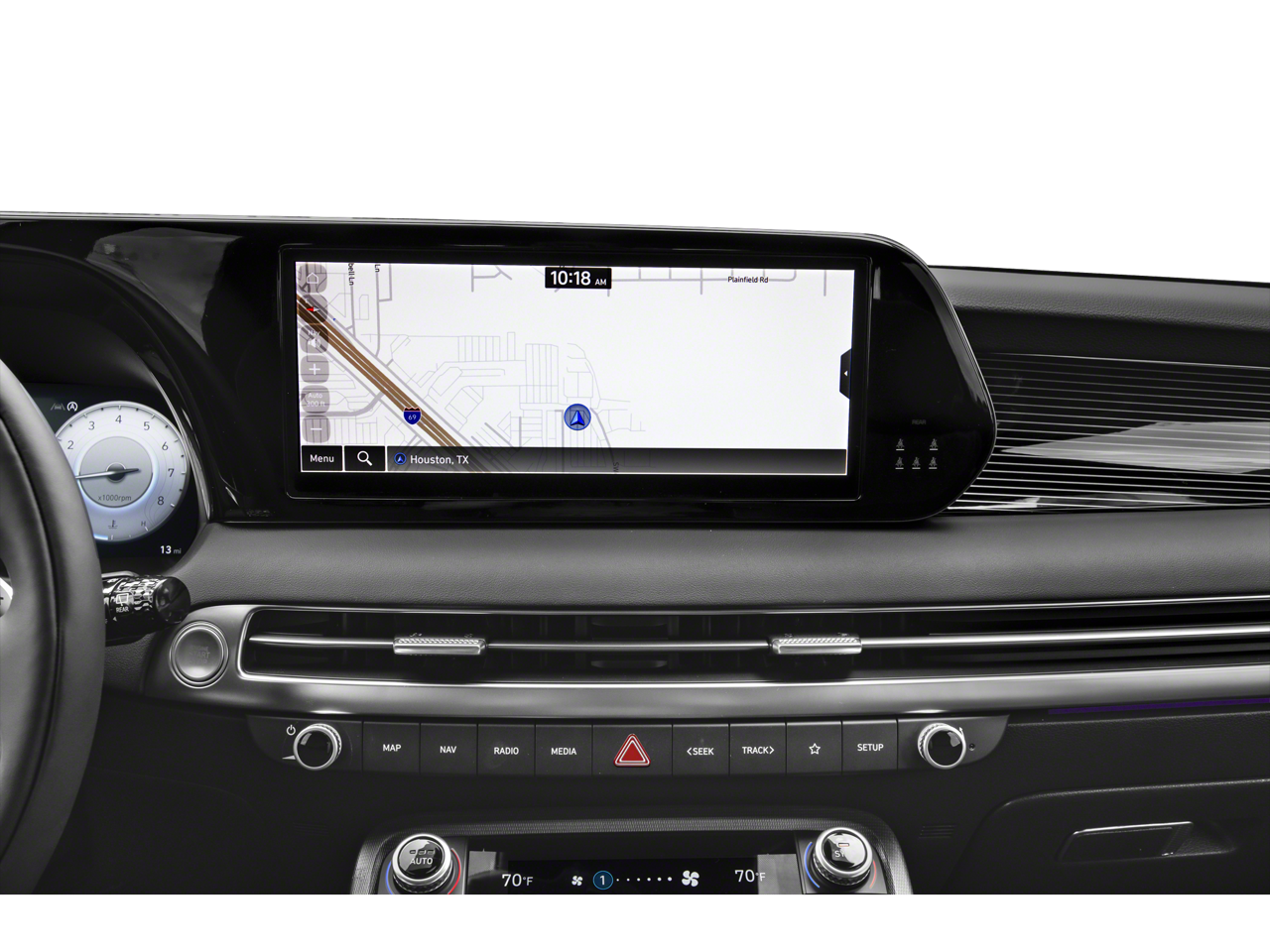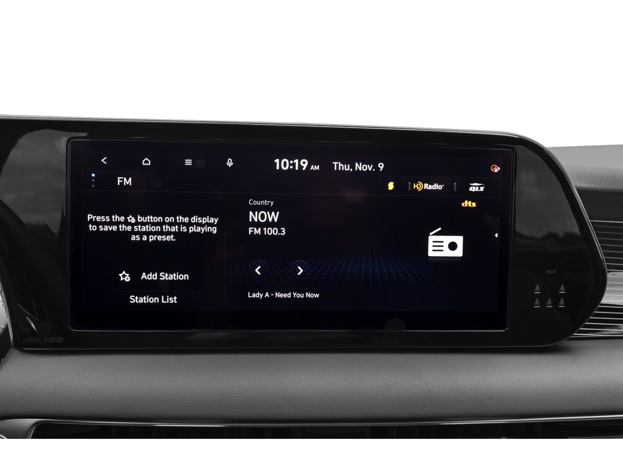 - Radio: AM/FM/MP3 Premium Audio System -inc: 630-Watts, Harman Kardon audio system w/12-speakers, Quantum Logic Surround, Clari-Fi, 12.3" color touchscreen display, onboard navigation w/traffic flow including incident data via HD Radio (HERE), Over-the-Air (OTA) map updates, SiriusXM, Android Auto and Apple CarPlay, USB, dynamic voice recognition, rear seat quiet mode, passenger talk (in-car intercom), Bluetooth® hands-free connectivity w/multiple device connection and Bluelink Connected Car System
