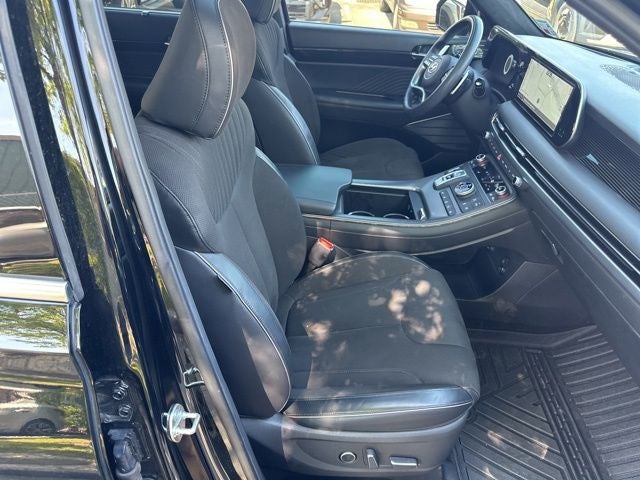 Abyss Black Pearl 2024 Hyundai Palisade Calligraphy Night Edition AWD 8-Speed Automatic with SHIFTRONIC V6 12 Speakers, 3.648 Axle Ratio, 3rd row seats: split-bench, 4-Wheel Disc Brakes, ABS brakes, Air Conditioning, Alloy wheels, AM/FM radio: SiriusXM, Apple CarPlay & Android Auto, Auto High-beam Headlights, Auto-dimming door mirrors, Auto-dimming Rear-View mirror, Auto-leveling suspension, Automatic temperature control, Brake assist, Bumpers: body-color, Compass, Delay-off headlights, Driver door bin, Driver vanity mirror, Dual front impact airbags, Dual front side impact airbags, Electronic Stability Control, Emergency communication system, Exterior Parking Camera Rear, Four wheel independent suspension, Front anti-roll bar, Front Bucket Seats, Front Center Armrest, Front dual zone A/C, Front reading lights, Fully automatic headlights, Garage door transmitter: HomeLink, harman/kardon® Speakers, Heads-Up Display, Heated & Ventilated Front Bucket Seats, Heated door mirrors, Heated front seats, Heated rear seats, Heated steering wheel, Illuminated entry, Knee airbag, Low tire pressure warning, Memory seat, Microfiber Suede Seat Trim, Navigation System, Occupant sensing airbag, Option Group 01, Outside temperature display, Overhead airbag, Overhead console, Panic alarm, Passenger door bin, Passenger vanity mirror, Power door mirrors, Power driver seat, Power Liftgate, Power moonroof, Power passenger seat, Power steering, Power windows, Radio data system, Radio: AM/FM/MP3 Premium Audio System, Rain sensing wipers, Rear air conditioning, Rear anti-roll bar, Rear audio controls, Rear reading lights, Rear side impact airbag, Rear window defroster, Rear window wiper, Reclining 3rd row seat, Remote keyless entry, Roof rack, Security system, Speed control, Speed-sensing steering, Split folding rear seat, Spoiler, Steering wheel mounted audio controls, Tachometer, Telescoping steering wheel, Tilt steering wheel, Traction control, Trip computer, Turn signal indicator mirrors, Variably intermittent wipers, Ventilated front seats, Ventilated rear seats, Wheels: 20 x 7.5J Black Liquid Paint Alloy.
