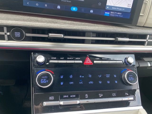 - Radio: AM/FM/HD Bose Premium Audio System -inc: 12 speakers including subwoofer, external amplifier, 12.3" wide touchscreen, Apple CarPlay and Android Auto, Bluetooth® hands-free w/wireless audio streaming, dynamic voice recognition, USB connectivity, SiriusXM, Blue Link connected car system, navigation system including traffic flow w/incident data via HD Radio (HERE) and rear seat quiet mode