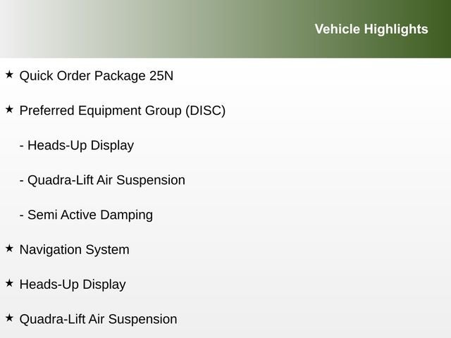 Heads-Up Display, Navigation System, Preferred Equipment Group (DISC), Quadra-Lift Air Suspension, Quick Order Package 25N, Semi Active Damping.