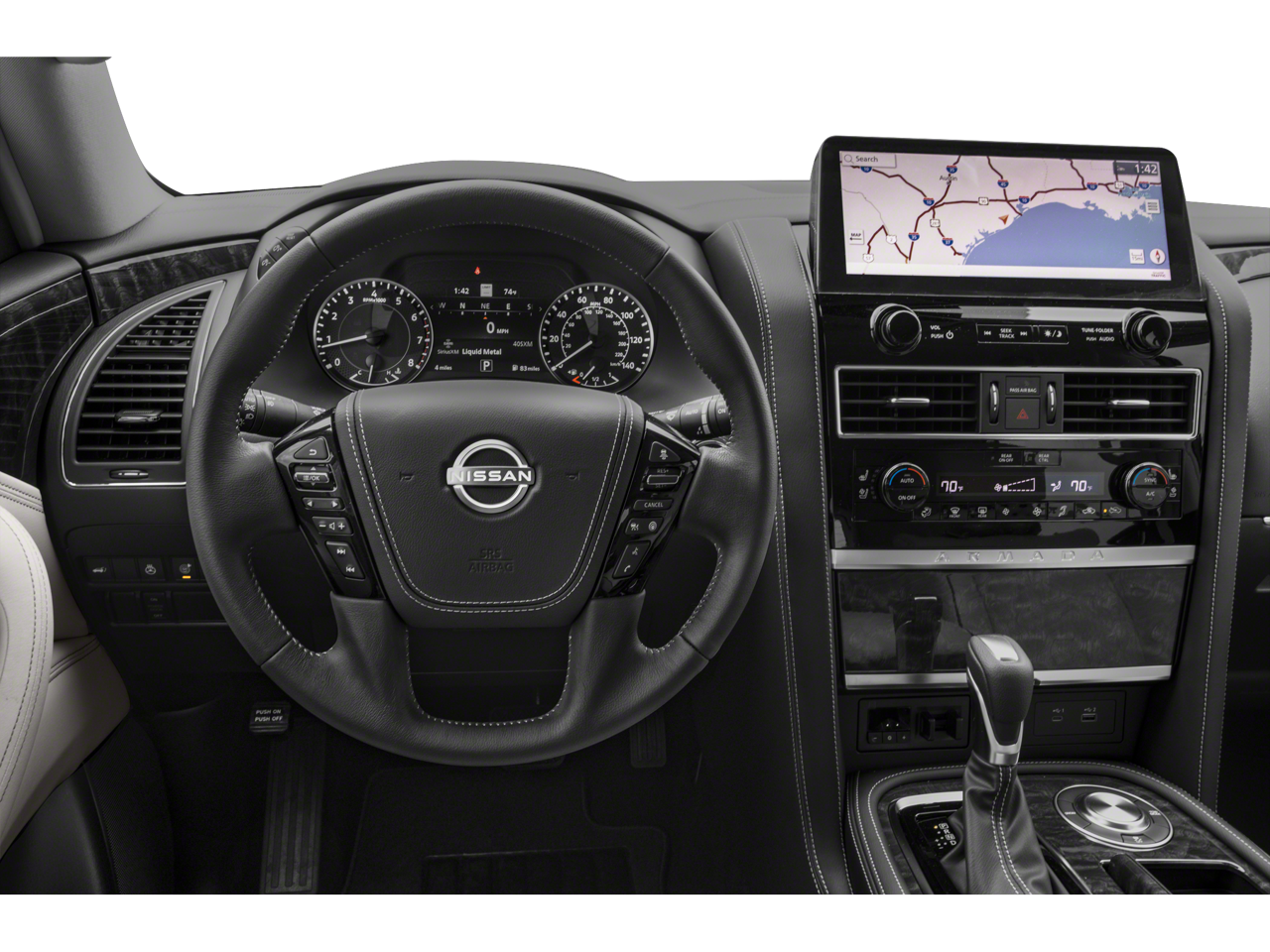 13 Speakers, 2.937 Axle Ratio, 2nd Row Captain's Chairs, 2nd Row Center Console w/Padded Armrest, 3rd Row Carpeted Floor Mats - Captain Seat, 3rd row seats: split-bench, 4-Wheel Disc Brakes, ABS brakes, Air Conditioning, Alloy wheels, AM/FM radio: SiriusXM, Anti-whiplash front head restraints, Auto High-beam Headlights, Auto tilt-away steering wheel, Auto-dimming door mirrors, Auto-dimming Rear-View mirror, Auto-leveling suspension, Automatic temperature control, Brake assist, Bumpers: body-color, Captain's Chairs Package, Cargo Package, Climate-Controlled Front Bucket Seats, Delay-off headlights, Driver door bin, Driver vanity mirror, Dual front impact airbags, Dual front side impact airbags, Electronic Stability Control, Emergency communication system: NissanConnect Services, Exterior Parking Camera Rear, Four wheel independent suspension, Front anti-roll bar, Front Bucket Seats, Front Center Armrest, Front dual zone A/C, Front fog lights, Front reading lights, Fully automatic headlights, Garage door transmitter: HomeLink, Heated door mirrors, HEATED FRONT SEATS, Heated rear seats, Heated steering wheel, HVAC memory, Illuminated entry, Illuminated Kick Plates, Illuminated Scuff Plate, Knee airbag, Leather Shift Knob, Leather steering wheel, Low tire pressure warning, Memory seat, NAVIGATION, Nissan USB Charging Cable Set, Occupant sensing airbag, Outside temperature display, Overhead airbag, Overhead console, Panic alarm, Passenger door bin, Passenger vanity mirror, Power door mirrors, Power driver seat, Power Liftgate, Power moonroof, Power passenger seat, Power steering, Power windows, Quilted Leather Seat Trim, Radio: NissanConnect w/SiriusXM, Rain sensing wipers, Rear air conditioning, Rear anti-roll bar, Rear reading lights, Rear seat center armrest, Rear window defroster, Rear window wiper, Reclining 3rd row seat, Remote keyless entry, Roof Rail Cross Bars - Gun Metal, Security system, Speed control, Speed-sensing steering, Speed-Sensitive Wipers, Split folding rear seat, Spoiler, Steering wheel memory, Steering wheel mounted audio controls, Tachometer, Telescoping steering wheel, Tilt steering wheel, Traction control, Trip computer, Turn signal indicator mirrors, Variably intermittent wipers, Ventilated front seats, Voltmeter, Wheels: 22 x 8J Machine-Faced w/Tinted Clear Coat.