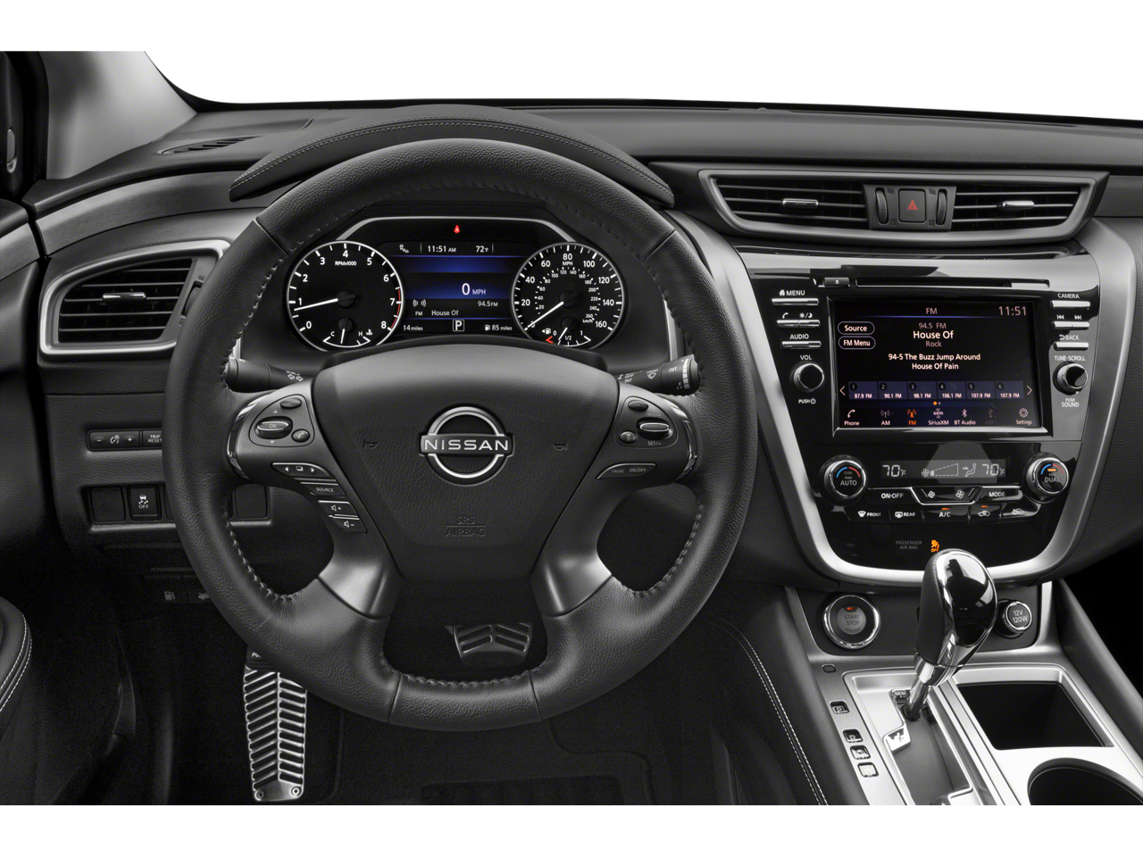 4-Wheel Disc Brakes, 4.667 Axle Ratio, 6 Speakers, ABS brakes, Air Conditioning, Alloy wheels, AM/FM radio: SiriusXM, AM/FM/CD/MP3/WMA Audio System, Auto High-beam Headlights, Auto-dimming Rear-View mirror, Automatic temperature control, Blind Spot Warning, Brake assist, Bumpers: body-color, Carpeted Floor Mats & Carpeted Cargo Mat, CD player, Child-Seat-Sensing Airbag, Compass, Delay-off headlights, Driver door bin, Driver vanity mirror, Dual front impact airbags, Dual front side impact airbags, Electronic Stability Control, Four wheel independent suspension, Front anti-roll bar, Front Bucket Seats, Front Center Armrest, Front dual zone A/C, Front fog lights, Front reading lights, Fully automatic headlights, Heated door mirrors, Heated Front Bucket Seats, HEATED FRONT SEATS, Illuminated entry, Knee airbag, Leather steering wheel, Leatherette-Appointed Seat Trim, Low tire pressure warning, NissanConnect featuring Apple CarPlay and Android Auto, Occupant sensing airbag, Outside temperature display, Overhead airbag, Overhead console, Panic alarm, Passenger door bin, Passenger vanity mirror, Power door mirrors, Power driver seat, Power passenger seat, Power steering, Power windows, Radio data system, Rear anti-roll bar, Rear Bumper Protector, Rear reading lights, Rear seat center armrest, Rear side impact airbag, Rear window defroster, Rear window wiper, Remote keyless entry, Security system, Speed control, Speed-sensing steering, Speed-Sensitive Wipers, Splash Guards (B92), Split folding rear seat, Spoiler, Steering wheel mounted audio controls, Tachometer, Telescoping steering wheel, Tilt steering wheel, Traction control, Trip computer, Turn signal indicator mirrors, Variably intermittent wipers, Wheels: 18 Machined Aluminum-Alloy.