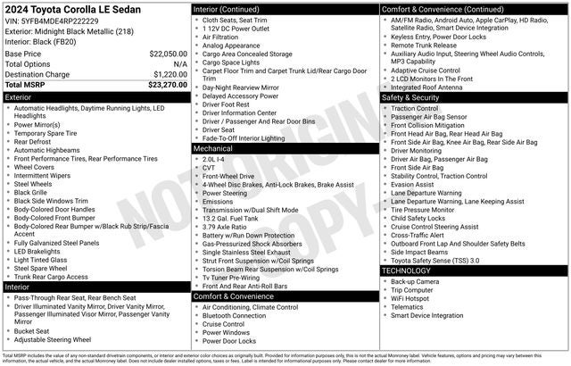 Experience the confidence and convenience of the 2024 Toyota Corolla LE. This sedan is a testament to Toyota's commitment to quality, reliability, and innovation. Schedule a test drive today and discover the joy of owning a Corolla that truly exceeds expectations.