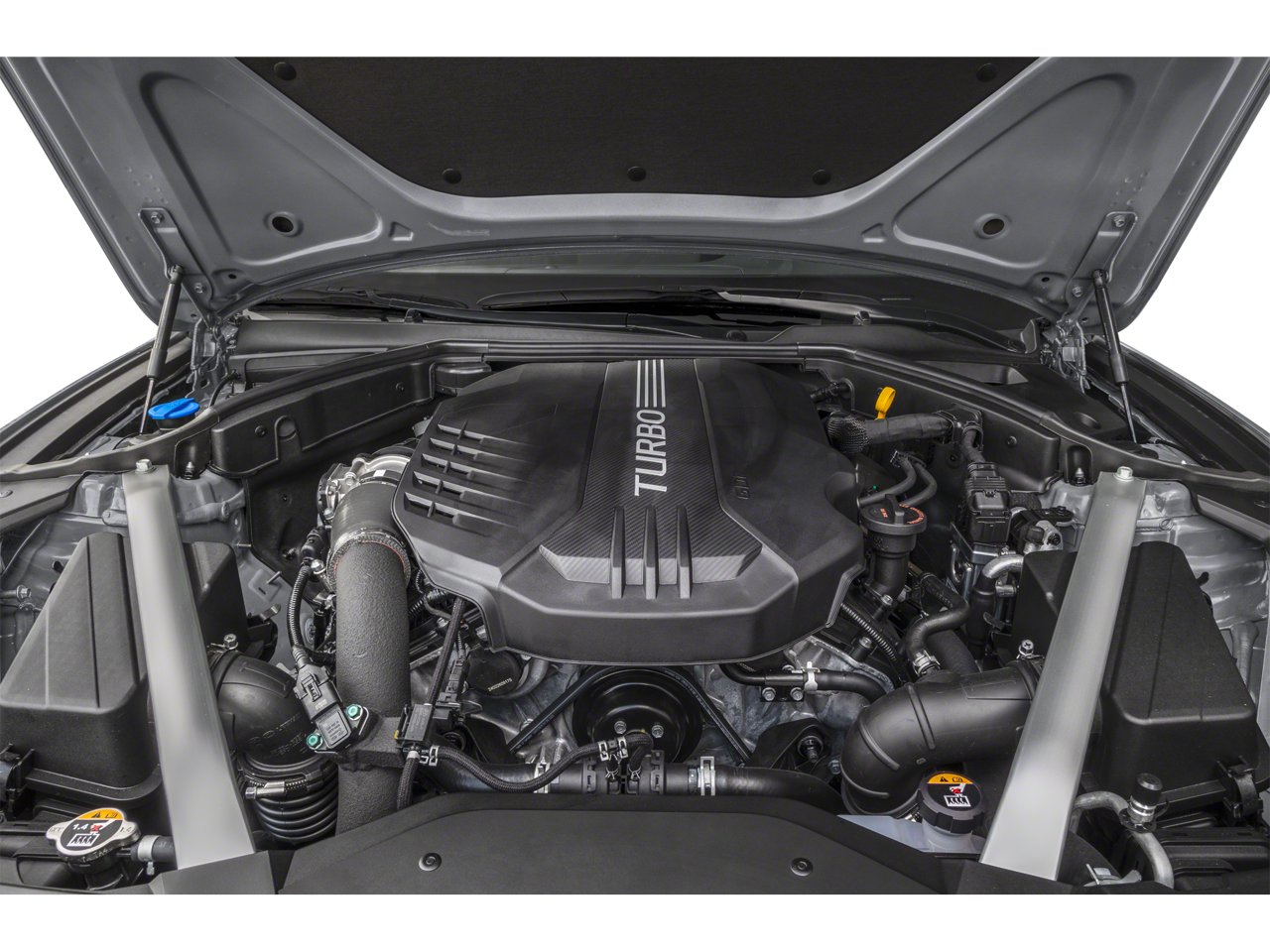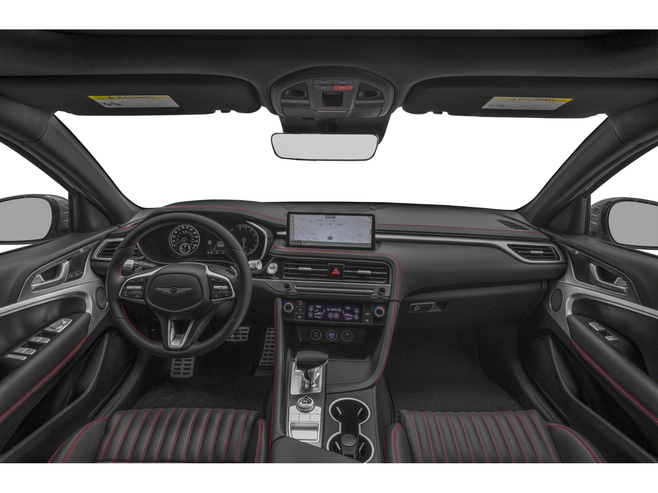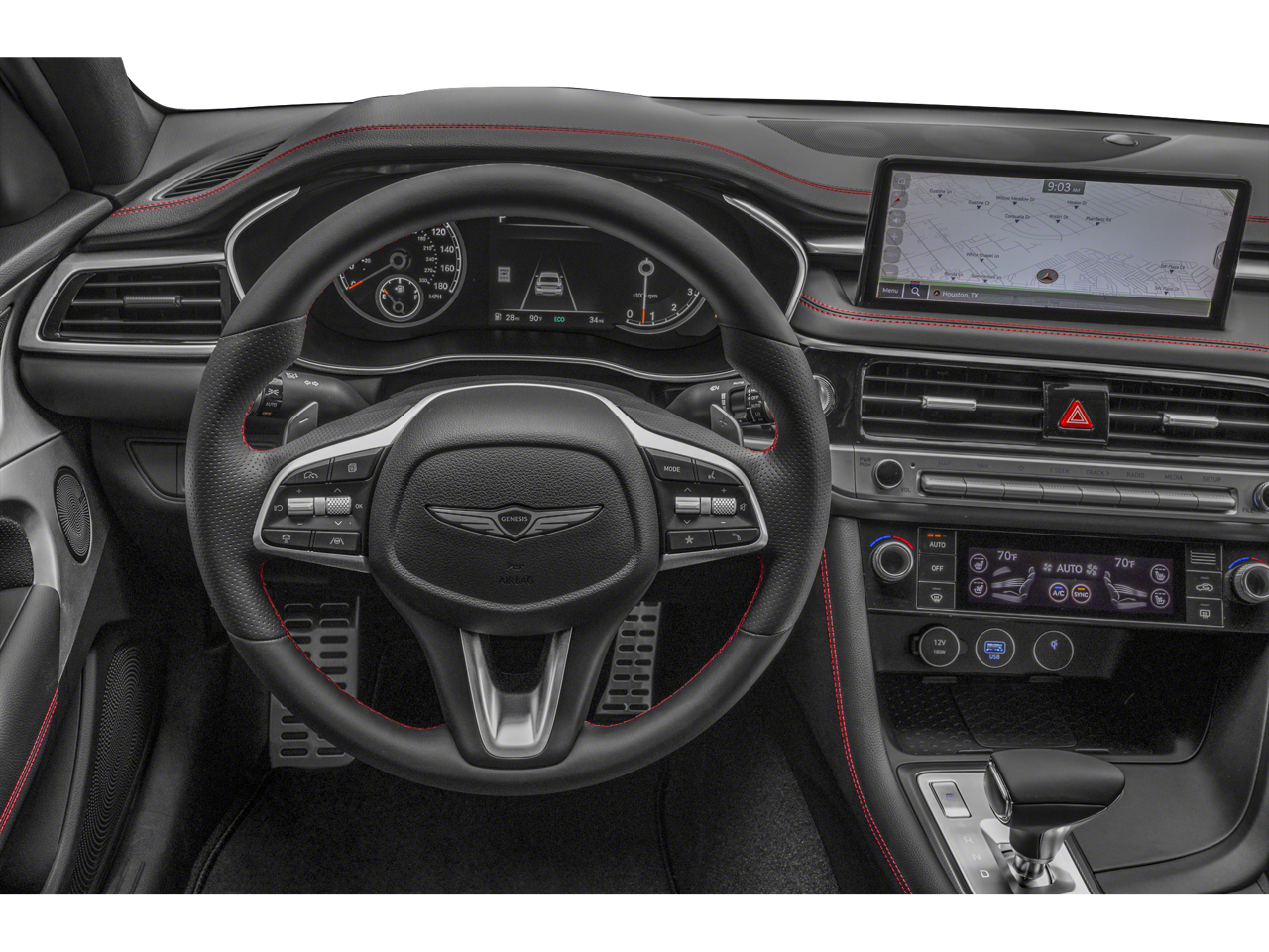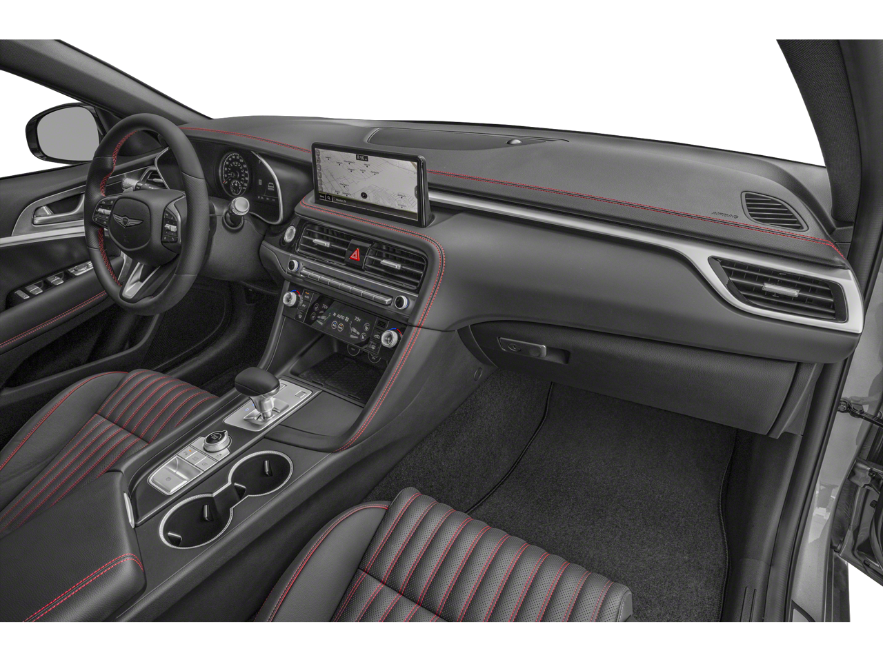 15 Speakers, 4-Wheel Disc Brakes, ABS brakes, Air Conditioning, Alloy wheels, AM/FM radio: SiriusXM, Android Auto & Apple CarPlay, Anti-whiplash front head restraints, Auto High-beam Headlights, Auto-dimming door mirrors, Auto-dimming Rear-View mirror, Automatic temperature control, Brake assist, Bumpers: body-color, Delay-off headlights, Driver door bin, Driver vanity mirror, Dual front impact airbags, Dual front side impact airbags, Electronic Stability Control, Emergency communication system: Genesis Connected Services, Exterior Parking Camera Rear, First Aid Kit, Four wheel independent suspension, Front anti-roll bar, Front Bucket Seats, Front Center Armrest, Front dual zone A/C, Front reading lights, Fully automatic headlights, Garage door transmitter: HomeLink, Heated door mirrors, Heated front seats, Htd & Ventilated Multi-Adjustable Fr Bucket Seats, Illuminated entry, Knee airbag, Leather Seating Surfaces, Low tire pressure warning, Memory seat, Mudguards, Navigation System, Occupant sensing airbag, Option Group 01, Outside temperature display, Overhead airbag, Overhead console, Panic alarm, Passenger door bin, Passenger vanity mirror, Power door mirrors, Power driver seat, Power moonroof, Power passenger seat, Power steering, Power windows, Radio: AM/FM/SiriusXM/HD Lexicon Prem Audio System, Rain sensing wipers, Rear anti-roll bar, Rear reading lights, Rear seat center armrest, Rear side impact airbag, Rear window defroster, Remote keyless entry, Reversible Cargo Tray, Security system, Speed control, Speed-sensing steering, Speed-Sensitive Wipers, Split folding rear seat, Steering wheel memory, Steering wheel mounted audio controls, Tachometer, Telescoping steering wheel, Traction control, Trip computer, Turn signal indicator mirrors, Variably intermittent wipers, Ventilated front seats, Wheels: 19 x 8.0J Fr & 19 x 8.5J Rr Sport Alloy.