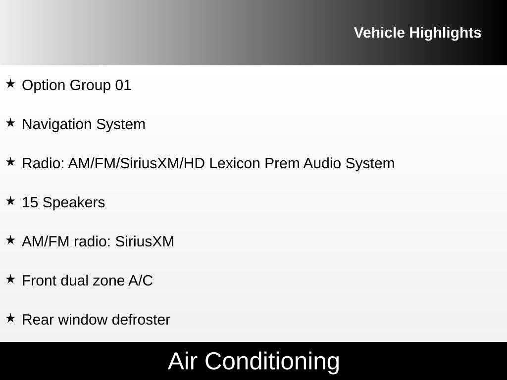 - Radio: AM/FM/SiriusXM/HD Lexicon Prem Audio System -inc: QuantumLogic surround sound, 15 high efficiency speakers including 2 subwoofers, Lexicon 11-channel digital external amplifier, speed-sensing, 5th generation navigation system w/10.25" touchscreen, dynamic voice recognition, connected routing, over the air updates, Android Auto and Apple CarPlay, SiriusXM Radio w/90-day trial subscription (not available in Alaska or Hawaii), Genesis connected services, Bluetooth® hands-free phone and audio streaming system