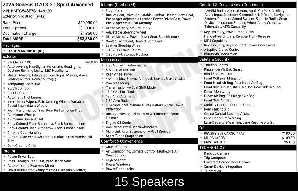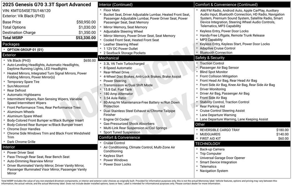 - Vehicle Name: Genesis G70