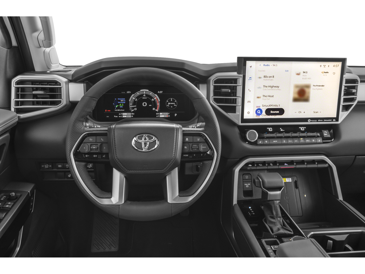 - Radio: AM/FM -inc: 14-inch touchscreen audio multimedia, Android Auto and Apple CarPlay compatible and SiriusXM w/3-month platinum plan trial subscription, See toyota.com/audio-multimedia for details, Connected services - Safety Connect w/up to 10-year trial, remote connect w/1-year trial, drive connect w/1-year trial, service connect w/up to 10-year trial, Wi-Fi connect w/up to 3 GB within 1-month trial, See toyota.com/connected-services for details