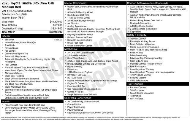 Certified as a one-owner vehicle with a clean CARFAX report, this 2025 Toyota Tundra SR5 is a true standout in the full-size pickup segment. With its impressive performance, advanced features, and exceptional condition, it's the perfect choice for those seeking a reliable and capable truck to tackle any task.