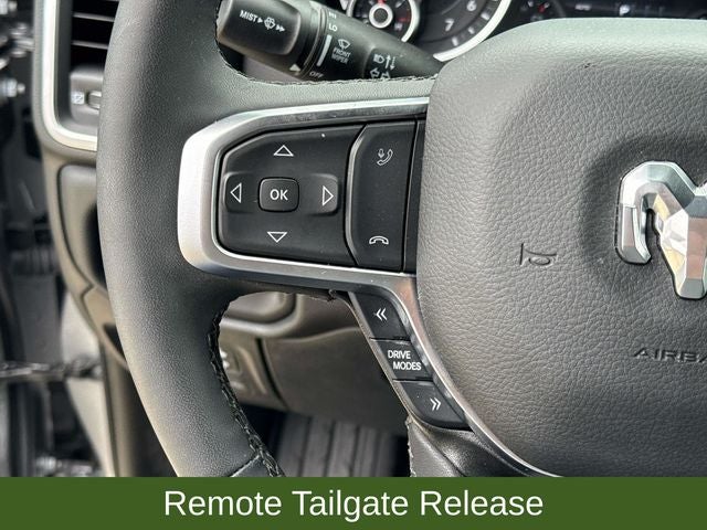 Designed with your convenience in mind, this Ram 1500 boasts a host of advanced features, including power-adjustable pedals, a heated steering wheel, and a remote tailgate release. The Bed Utility Group adds practical touches like a MOPAR spray-in bedliner and adjustable cargo tie-down hooks, making it easy to transport your gear with confidence.