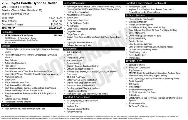 Experience the perfect blend of efficiency, technology, and style in the 2026 Toyota Corolla Hybrid SE. Discover the true meaning of driving pleasure and schedule a test drive today. We're confident this remarkable sedan will exceed your expectations and leave a lasting impression.