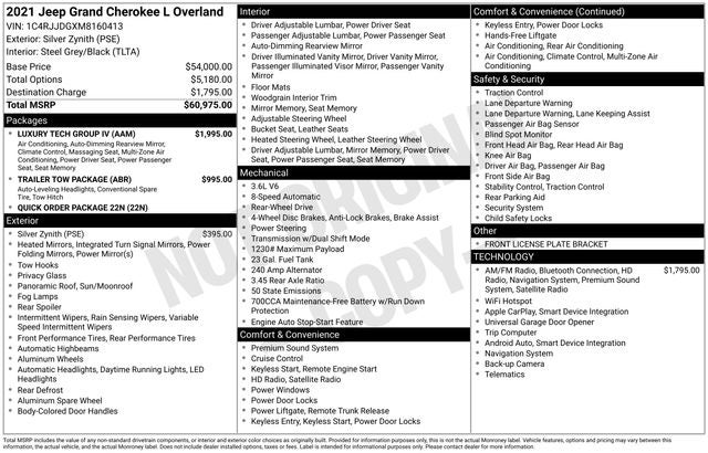 Elevate your driving experience with this 2021 Jeep Grand Cherokee L Overland. Visit our showroom today to take this exceptional SUV for a test drive and discover the ultimate in luxury and capability.